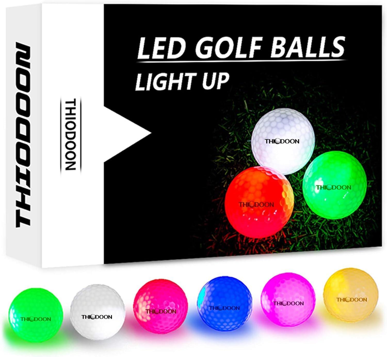 THIODOON Glow in The Dark Golf Balls Light up Night Led Golf Balls Gift Sets for Men Kids Women(Upgraded 6 Pack- Timer Reset)