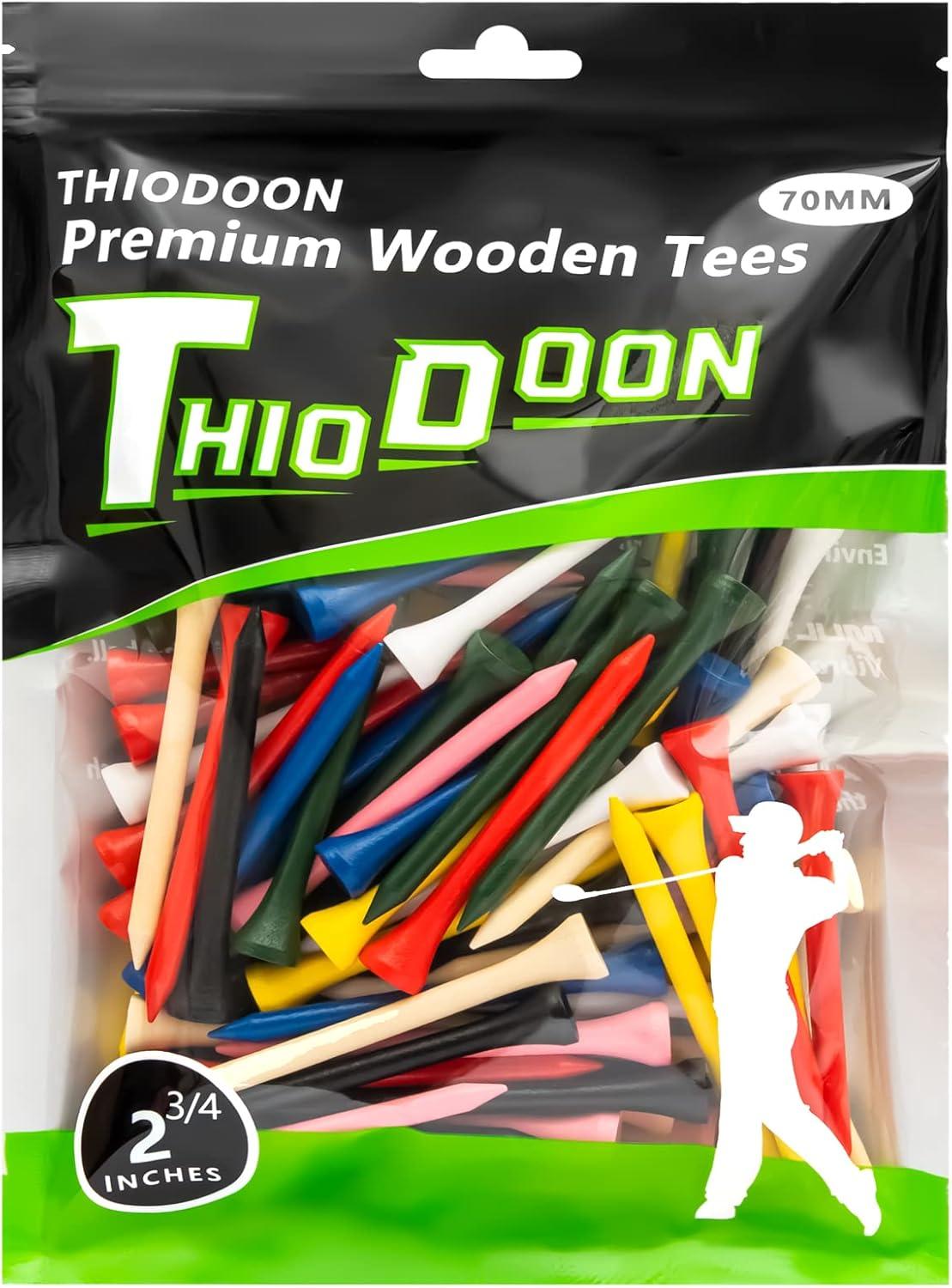 THIODOON Golf Tees Professional Natural Wood Golf Tees Pack of 100, Golfing Tees Multiple Colors Size 3-1/4 inch, 2-3/4 inch or 2-1/8 inch, Tall Golf Tees Bulk Reduce Side Spin and Friction(Mixed Colors)